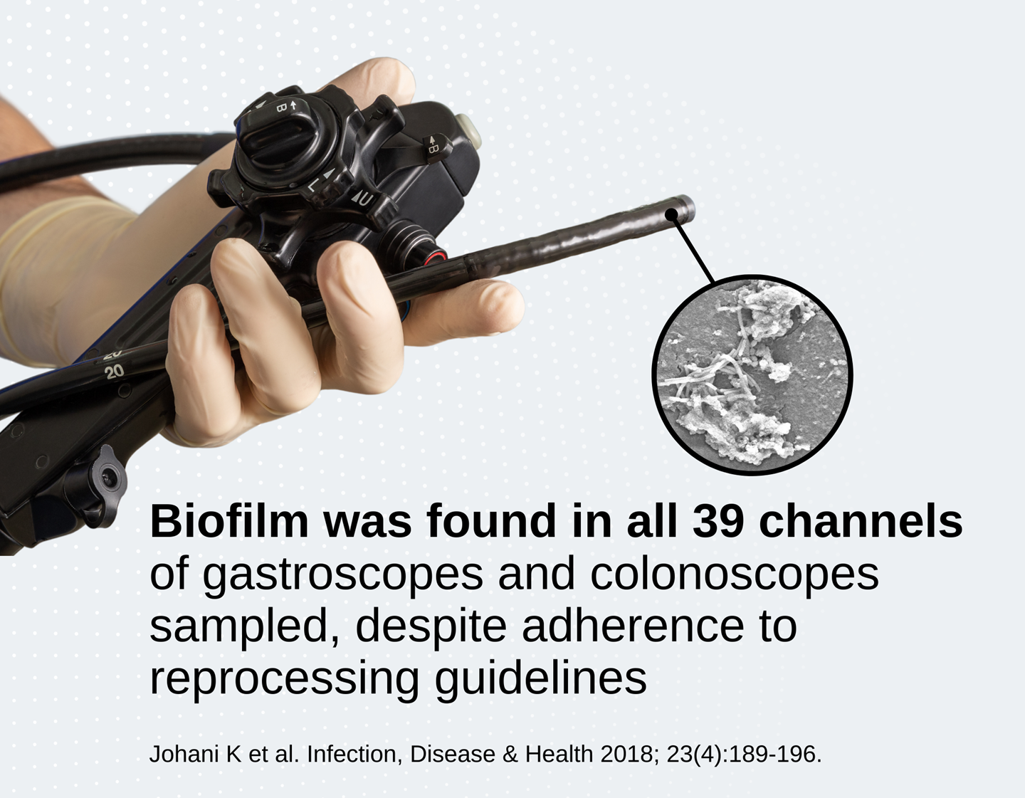 Multiple studies show that clinically used endoscopes can harbour biofilm