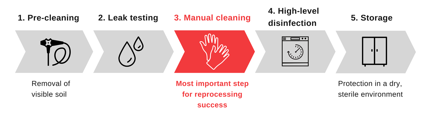 Manual cleaning is today’s gold standard, but has key problems that need to be addressed. Failure of reprocessing just due to inadequate manual cleaning is well documented.3