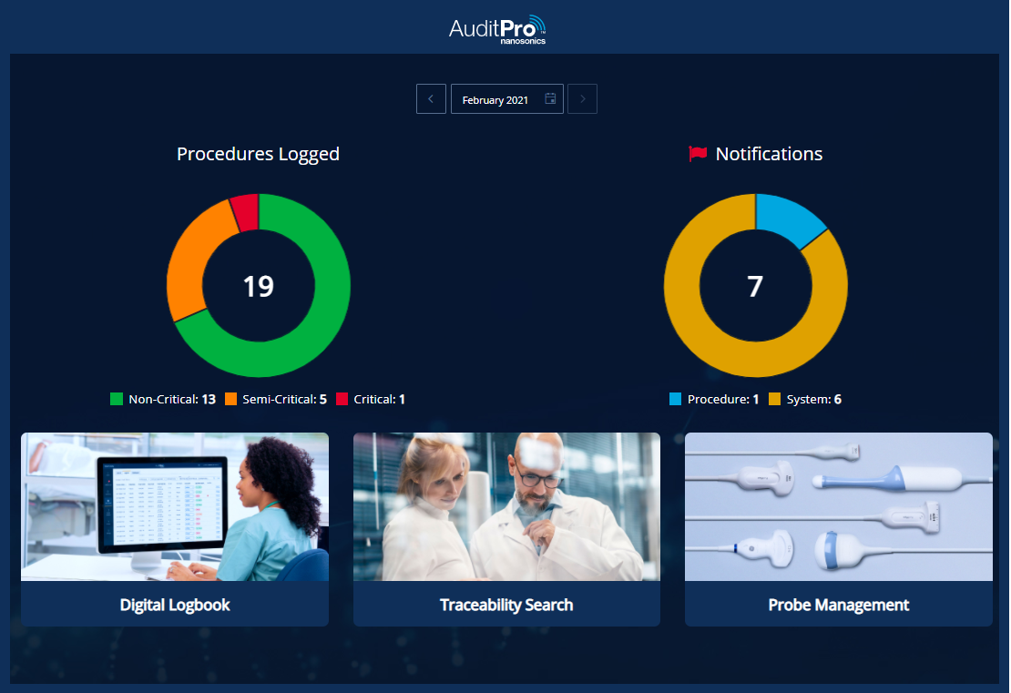 Nanosonics AuditPro™ streamlines your organization’s compliance with National standards and evidence-based guidelines. It provides you with real-time risk notifications for easy course-correction and survey-ready ultrasound infection prevention compliance reports.